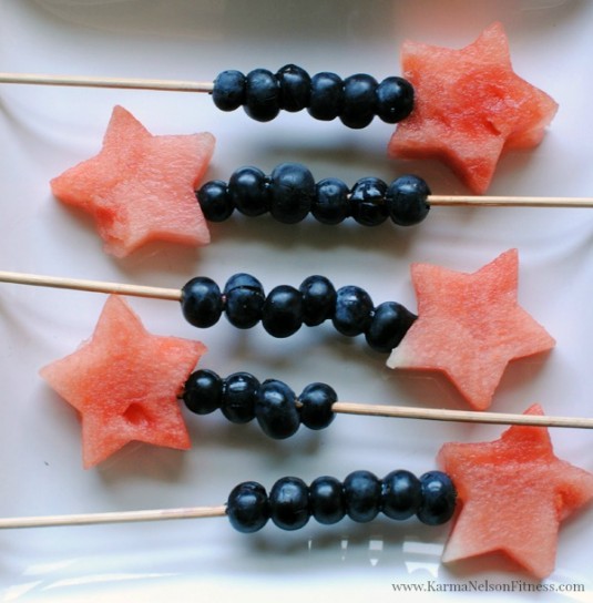 Kids will love these—just make sure they don’t run with the sticks! These festive snacks are fun to make and you can toss the extra watermelon into a fruit salad of its own, like the Star Spangled one above! Get the recipe.